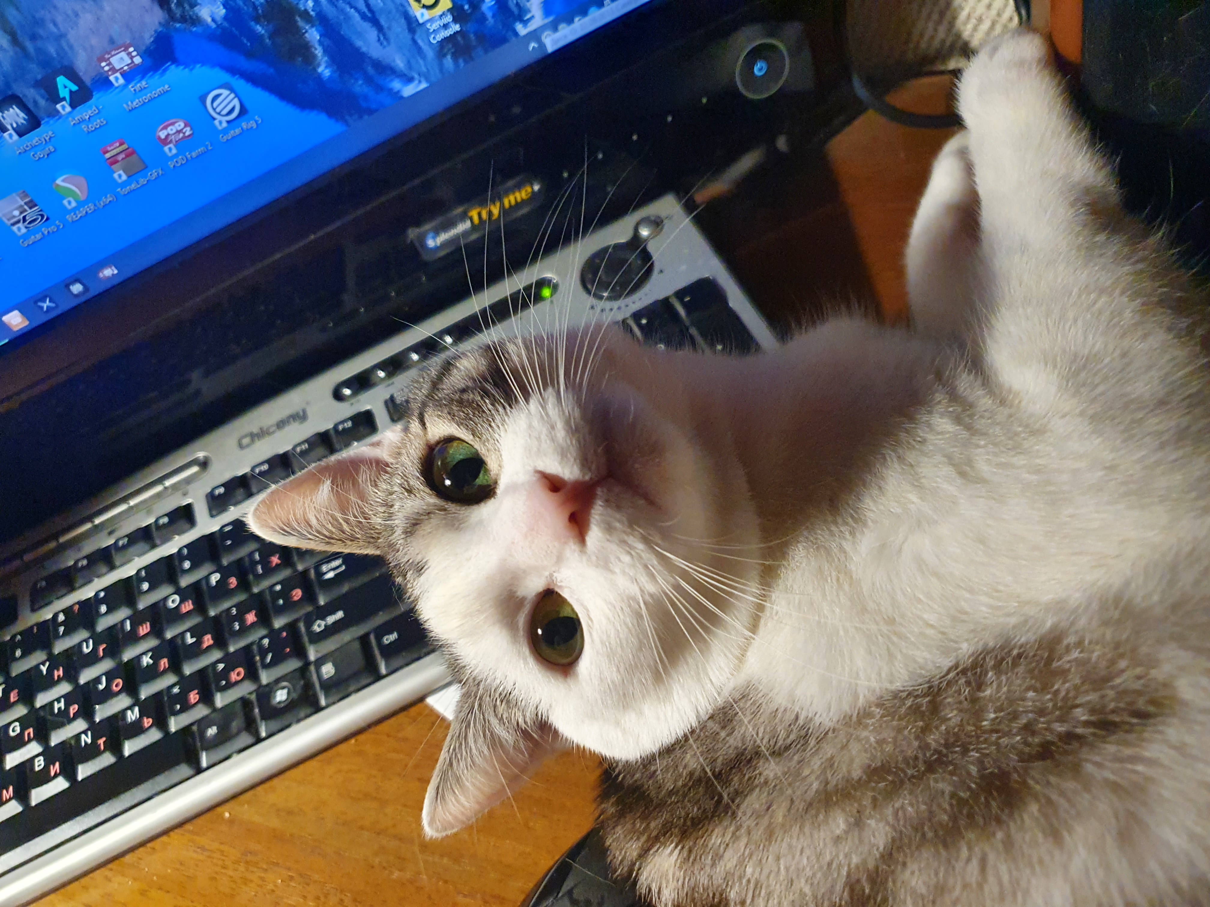Любимый кот, живущий у родителей. Забрали его из гончарной мастерской, куда он прибился котёнком с улицы.
